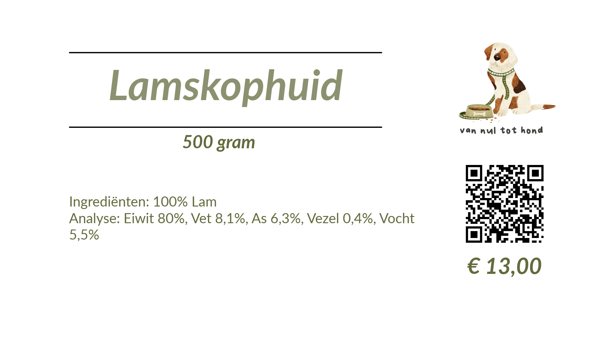 Omdat de geitenkophuid al een hele tijd niet leverbaar is heb ik een (tijdelijke) vervanger. Lamskophuid is verkrijgbaar per 500 gram, iets taaier dan runderkophuid en daarom extra fijn voor het poetsen van de tanden!
